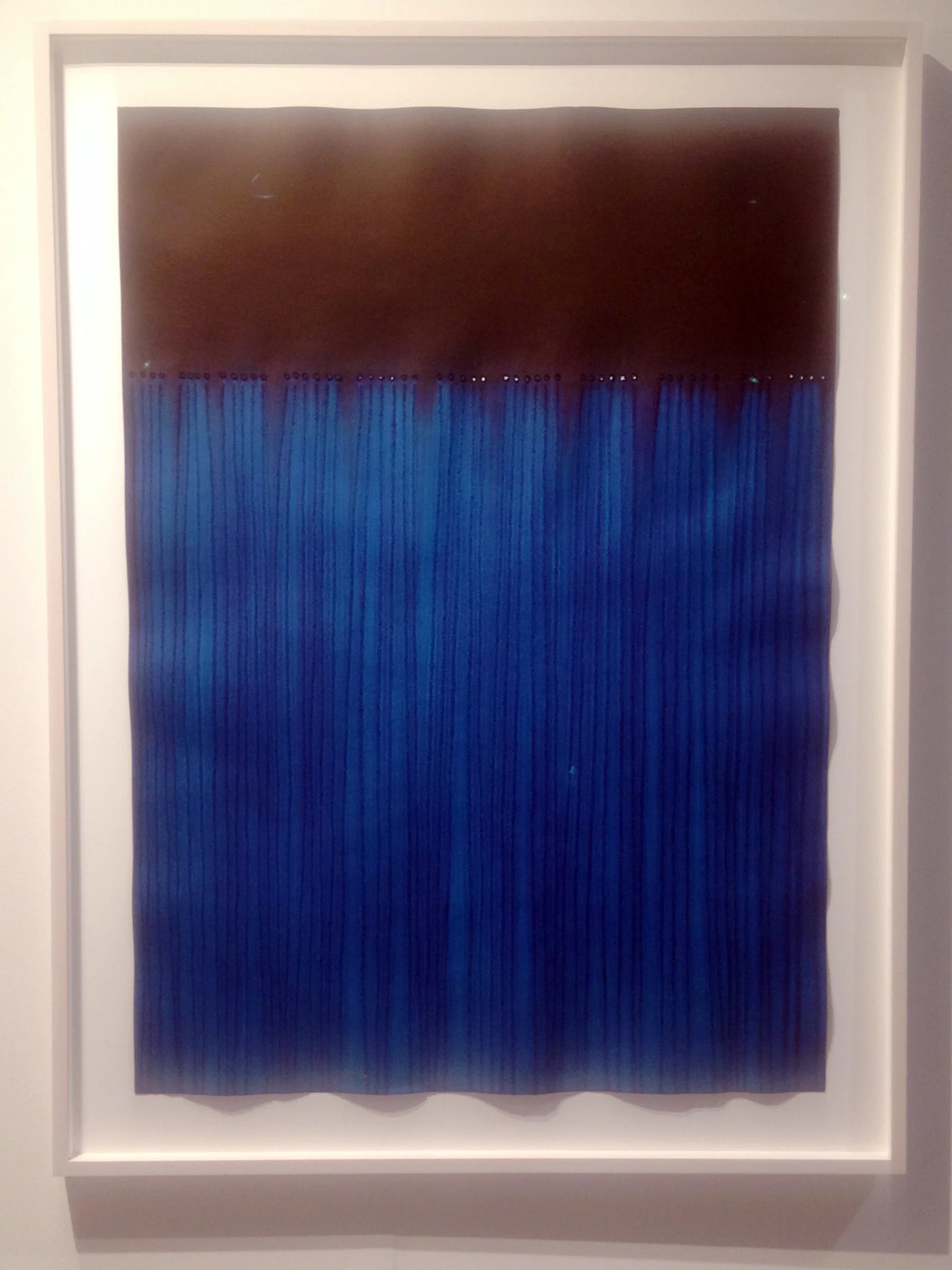 Though we each gravitated towards a diverse range of expressions, I instantly fell in love with the work of Indian artist, Sohan Qadri. He had three pieces exhibited by the Sundaram Tagore Gallery out of New York. Below-left is my favorite SAF pick (photo does not do it justice), Nitya, 2008 (Ink and dye on paper, 55"x39").